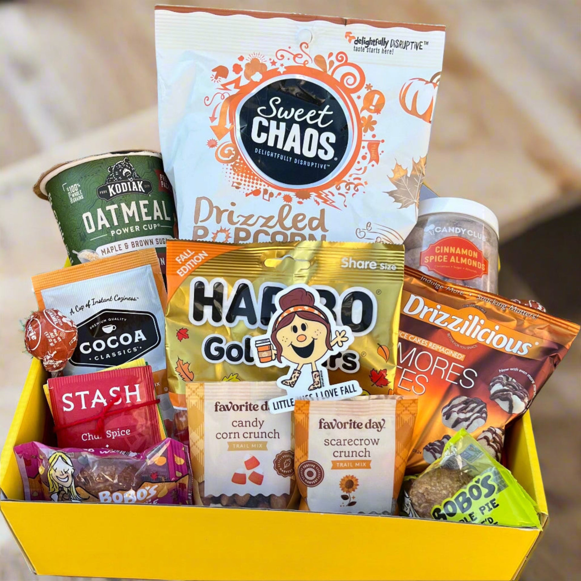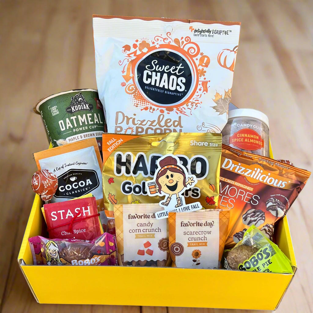 Celebrate cozy season with the Fall Flavors CarePak - a mix of sweet, spiced, and seasonal treats perfect for study breaks, care package surprises, or just sending a little autumn cheer to campus. From pumpkin spice to caramel and cinnamon, this box captures the taste of fall in every bite.