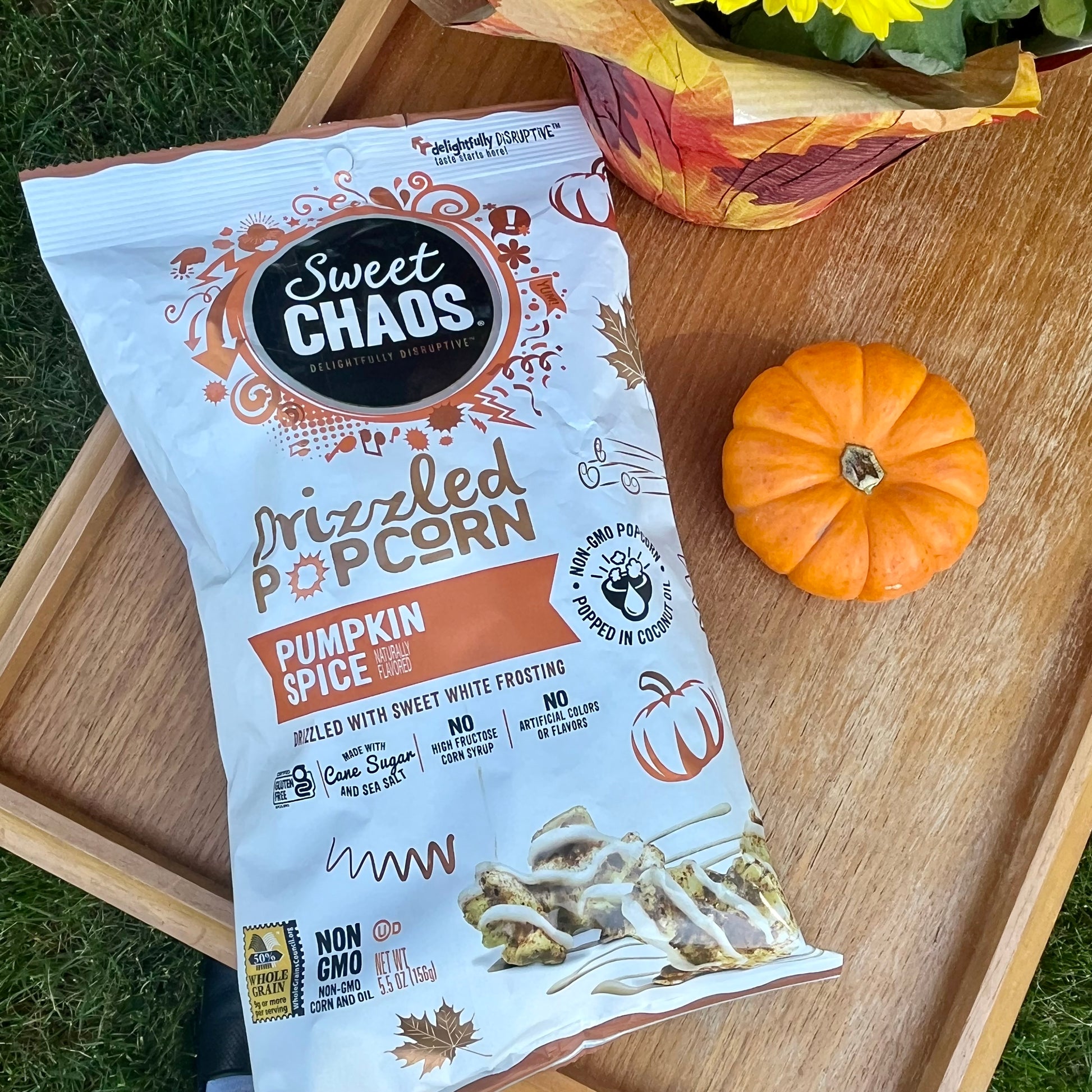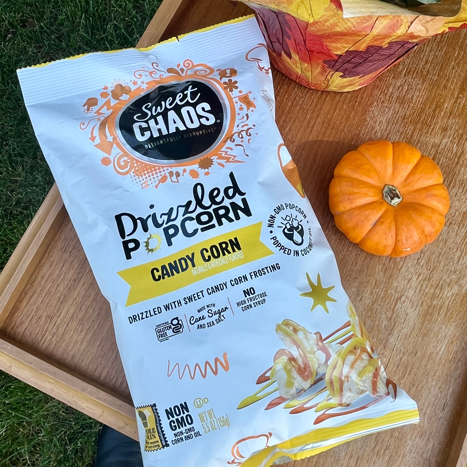 Sweet Chaos Drizzled Popcorn - choose your seasonal favorite at checkout: Candy Corn or Pumpkin Spice, the flavors of fall in every bite