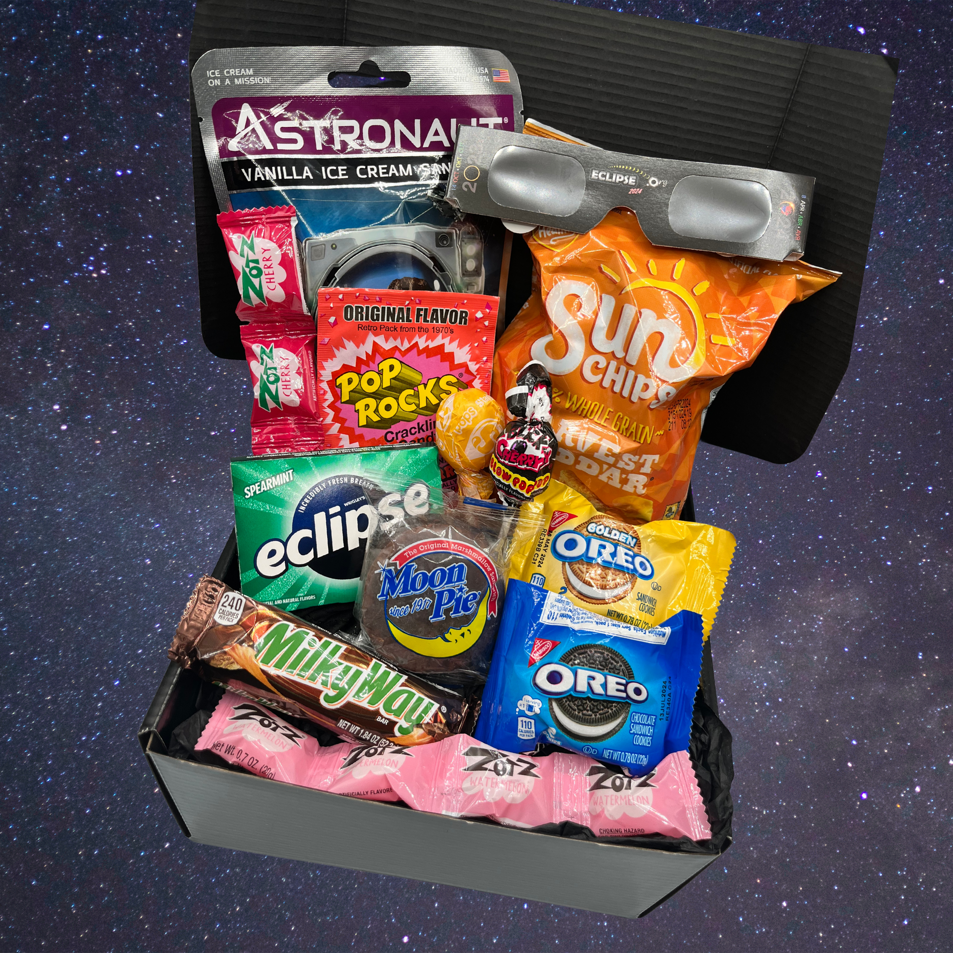 Prepare yourself or your favorite college student for an astronomical experience with our Total Solar Eclipse Snack Box! This snack box is the perfect way to make the most of the upcoming Total Solar Eclipse on April 8, 2024.